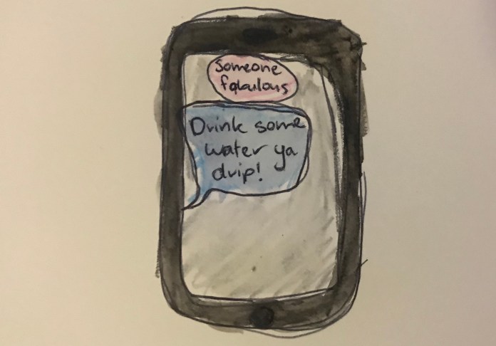 Realise the “dough” isn’t coming together and squirt in a few seconds of cold water (my housemates have a fancy fridge that dispenses cold water and it makes me feel like a queen). Mix again and taste.