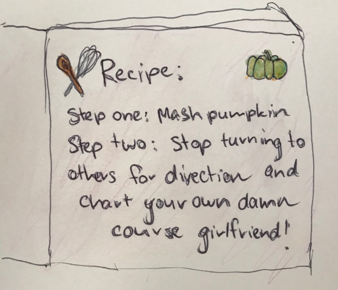 About 50 grams of butter and a quarter of a cup of brown sugar, one teaspoon of cinnamon and half a teaspoon of nutmeg into your food processor and then add the drained pumpkin. Again, I could have measured the pumpkin at this point, but I forgot. Sorry. You’re just going to have to cook by feel with this one. I mean, I realise that goes against the whole point of a recipe, but maybe think of this as a type of therapy that helps you tap into your rebellious, anarchist sprit.