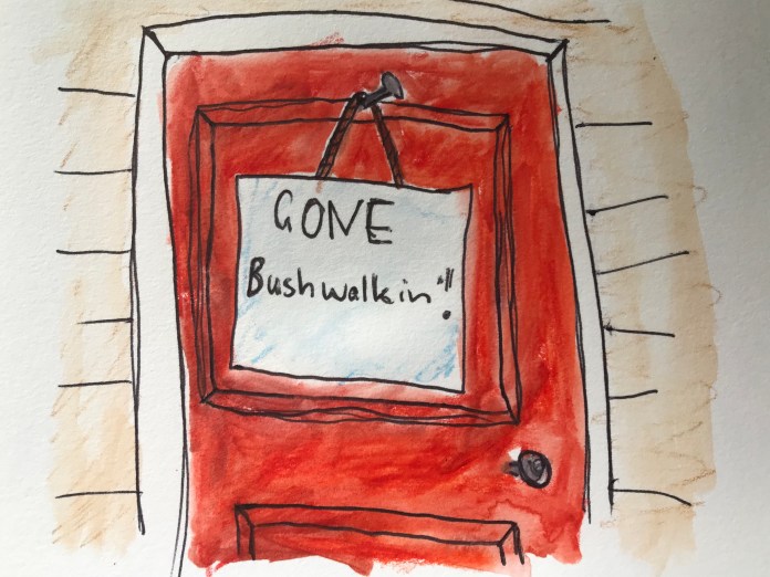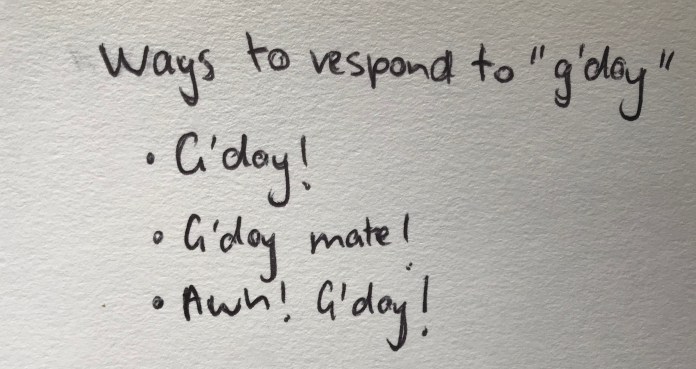 He and my other housemate/his fiancé were heading out to get some dinner the other night after a day of working from the home office/the reconfigured dinning nook with a whiteboard on the wall. That meant working in comfy clothing. Sloppy joes. Slippers. Tracksuit pants (geddit?!).