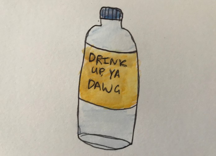An empty water bottle: Because I’m trying really hard to keep my withered body a little more hydrated.