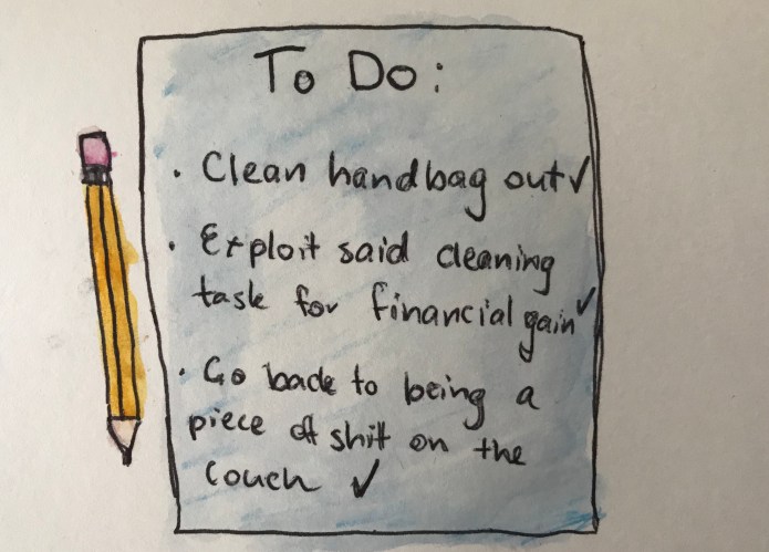 This is the kind of column that comes from having very, very little going on in your life but you’re still trying to optimise all activities so you have more time do… nothing. Observe as I exploit a mundane cleaning task and monetise it in a bid to maximise satisfaction.