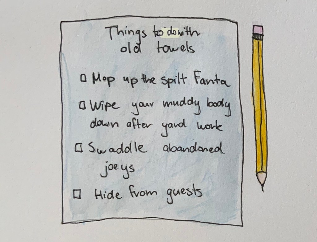 Provide an iron: I don’t own an iron. I have an ironing board and the water container part of an iron because I just kinda ended up with them, but no actual iron. But the presence of an ironing board suggested to my houseguest that I had an iron to go with it, so she went looking through the spare wardrobe in a fruitless search. And while she was looking, she discovered my overhead projector and then I had to explain to her why I had teaching equipment from the early 90s but not an iron.